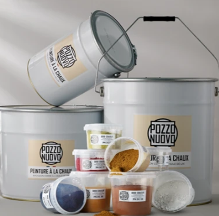 peintures saines de la marque Pozzo Nuovo, matériaux biosourcés, solutions sans polluants.